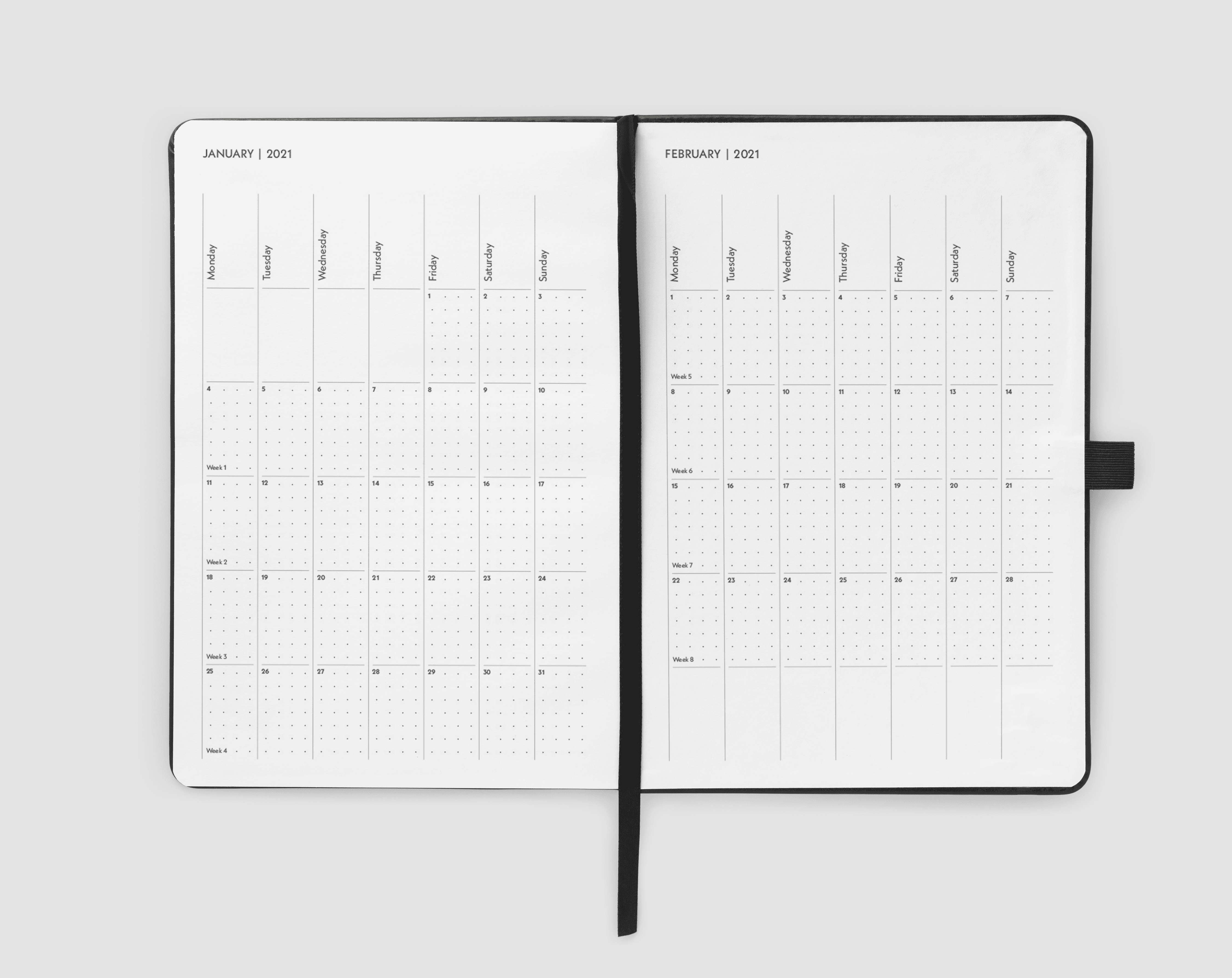 This project consists of a travel-focused agenda designed to provide essential tools for planning and documenting a journey. It combines functional clarity with a refined visual identity, built on a linear, orderly layout and the use of Kabel—a geometric yet elegantly expressive typeface that adds character without compromising readability.